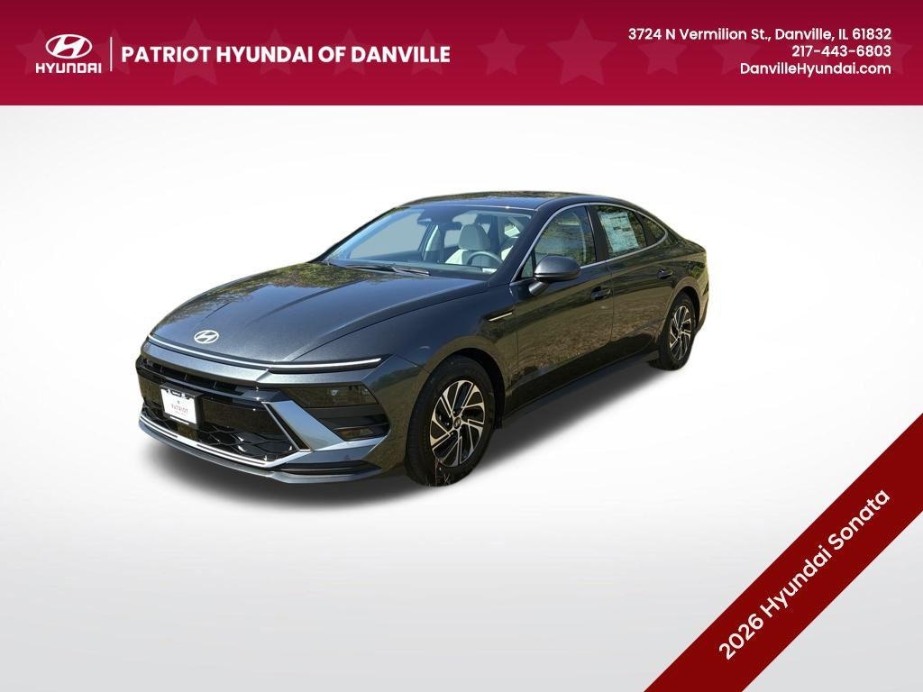 2026 Hyundai Sonata Hybrid Blue Portofino Gray FWD 6-Speed Automatic with Shiftronic I4 Sonata Hybrid Blue, I4, 6-Speed Automatic with Shiftronic, FWD, Portofino Gray, Gray Cloth, Apple CarPlay & Android Auto, Lane Departure Warning System, Radio: AM/FM/HD/MP3/SiriusXM, Spoiler, Steering wheel mounted audio controls.